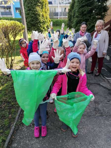 W piątek odbyły się w naszym przedszkolu obchody Dnia Ziemi. Dzieci wzięły udział w ogólnokrajowej akcji „Sprzątamy dla Polski”, która została zorganizowana pod patronatem Prezesa Rady Ministrów i Ministra Edukacji Narodowej. Sprzątanie najbliższej okolicy poprzedził udział w zajęciach dydaktycznych i realizacja programu „Czyste powietrze wokół nas” oraz udział w akcji ogrodniczej „Zdrowo rosną”, w ramach której każda grupa odebrała interaktywne pakiety edukacyjne. Przedszkolaki poprzez zabawę uczyły się, że każdy najmniejszy gest tj. segregacja odpadów, czy oszczędzanie wody pomaga naszej planecie.