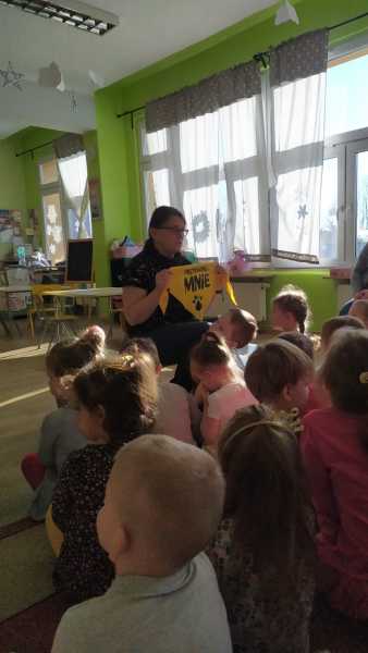 9 lutego do naszego przedszkola przyszła z wizytą pracownica rudzkiego schroniska, by podziękować za dary przekazywane na potrzeby tamtejszych zwierząt. Towarzyszyła jej kotka Fredzia, która z racji podeszłego wieku  jest rezydentką w schronisku. Dzieci z zainteresowaniem wysłuchały opowieści o zasadach działania schroniska, zwierzętach w nim przebywających. Dowiedziały się także, jak dbać o swojego pupila, by był zdrowy i szczęśliwy. Przedszkolaki chętnie opowiadały o swoich doświadczeniach w opiece nad zwierzętami. Na koniec wizyty każdy chętny mógł pogłaskać Fredzię, która ze spokojem przyjmowała ogromne zainteresowanie swoją osobą.