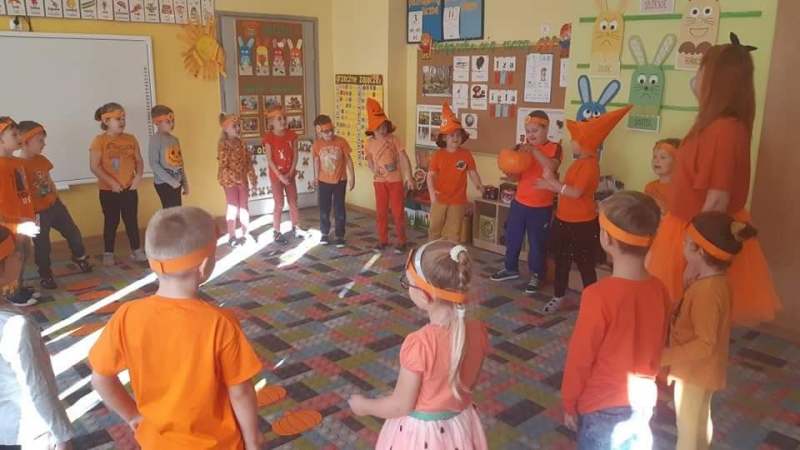Jak co roku jesienną porą obchodzimy w naszym przedszkolu Dzień Dyni. Jest to wesołe i kolorowe święto, podczas którego przedszkolaki ubierają się na pomarańczowo, a wszystkie organizowane zajęcia mają „dyniowy” klimat. Pięknie wykonane prace ozdabiają później przedszkolne korytarze umilając nawet najbardziej deszczowy dzień.