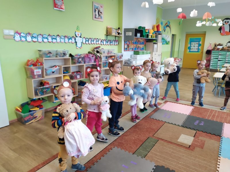 Nasze przedszkolaki obchodziły niedawno Dzień Pluszowego Misia. Każdy tego dnia mógł przyprowadzić do przedszkola swojego pluszowego przyjaciela. Były bajeczki, zabawy ruchowe, kolorowanki i kosztowanie misiowego przysmaku, czyli miodku. Dzieci i misie świetnie się bawiły:).