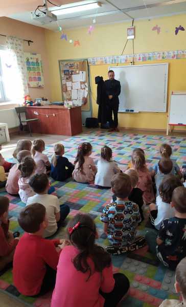W ramach ogólnopolskiej akcji Bajeczni adwokaci nasze przedszkolaki miały okazję dowiedzieć się czegoś o pracy prawników. Przedszkole odwiedził pan adwokat, który podczas spotkania z grupami przeczytał bajkę o misiu- adwokacie i przybliżył dzieciom swój zawód. Każdy chętny mógł też zadać pytanie dotyczące pracy naszego gościa.
