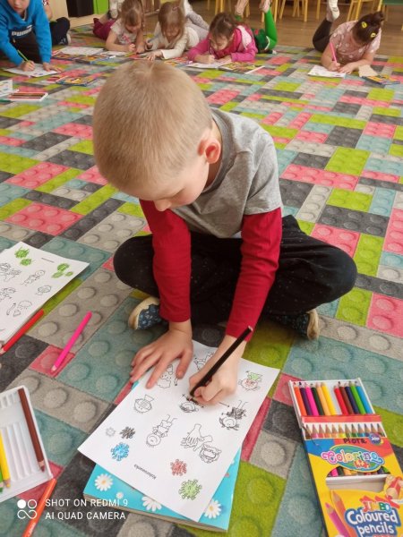 w okresie od 1.02.2022 r. do 25.03.2022 r.  . Przeprowadzone działania miały na celu poszerzenie wiedzy dzieci w zakresie skutecznego mycia rąk oraz zachowania higieny podczas wspólnych zabaw w przedszkolu. Stosując metody aktywizujące oraz metody projektu edukacyjnego dzieci zapoznały się z pojęciami „wirusa” i „bakterii”, których nie widać gołym okiem jednak istnieją i warto zadbać o odporność swoją i najbliższych. Zajęcia w grupach przedszkolnych zostały dostosowane do wieku dzieci  oraz do indywidualnych możliwości każdego przedszkolaka. Dzięki wykorzystaniu literatury („Basia, Misiek Zdzisiek i głupi wirus”, Pies w czasach zarazy”)  dzieci zdobyły wiedzę na temat zachowania bezpieczeństwa podczas kwarantanny oraz dowiedziały się jak zachować środki bezpieczeństwa nie tylko w miejscach publicznych, ale również w domu.