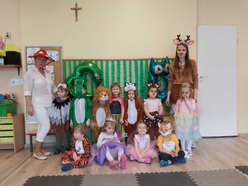 13 lutego odbył się w naszym przedszkolu bal karnawałowy w prawdziwie leśnym stylu. Tematem przewodnim były zwierzęta zamieszkujące lasy w różnych częściach świata. Dzieci spotkały się na wspólnej zabawie, która jak co roku była prowadzone przez profesjonalnego wodzireja. Na konkursach i tańcach czas szybko minął. Zmęczone , ale szczęśliwe przedszkolaki  rozeszły się do swoich sal na obiad i krótki odpoczynek. Podczas odbioru dzieci, w szatniach słychać było podekscytowane głosiki opowiadające o wspaniałej zabawie na leśnym balu.