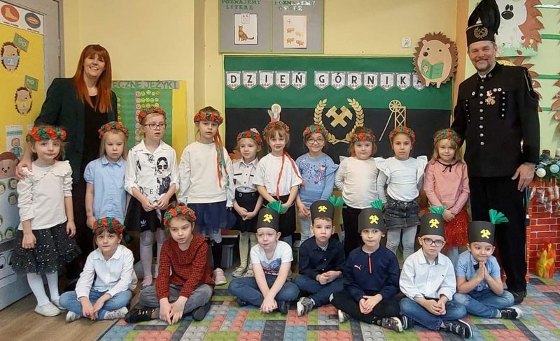 Z okazji dnia św.Barbary do naszego przedszkola zawitał wyjątkowy gość, by razem z dziećmi obchodzić swoje święto. Górnik spotkał się z każdą grupą. Podczas tych spotkań opowiadał o pracy pod ziemią, pokazywał (i pozwolił przymierzyć!) codzienny strój roboczy górnika. Odpowiadał na pytania, a nawet zagrał i zaśpiewał z dziećmi piosenkę. To było bardzo miłe i wesołe spotkanie.