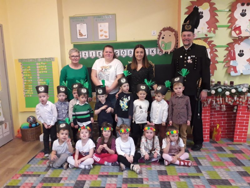 Z okazji dnia św.Barbary do naszego przedszkola zawitał wyjątkowy gość, by razem z dziećmi obchodzić swoje święto. Górnik spotkał się z każdą grupą. Podczas tych spotkań opowiadał o pracy pod ziemią, pokazywał (i pozwolił przymierzyć!) codzienny strój roboczy górnika. Odpowiadał na pytania, a nawet zagrał i zaśpiewał z dziećmi piosenkę. To było bardzo miłe i wesołe spotkanie.