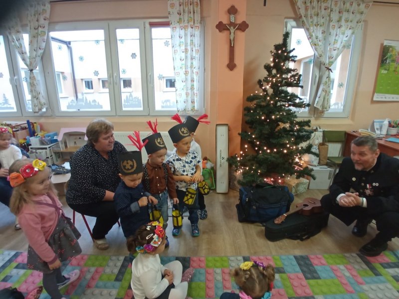 Z okazji dnia św.Barbary do naszego przedszkola zawitał wyjątkowy gość, by razem z dziećmi obchodzić swoje święto. Górnik spotkał się z każdą grupą. Podczas tych spotkań opowiadał o pracy pod ziemią, pokazywał (i pozwolił przymierzyć!) codzienny strój roboczy górnika. Odpowiadał na pytania, a nawet zagrał i zaśpiewał z dziećmi piosenkę. To było bardzo miłe i wesołe spotkanie.