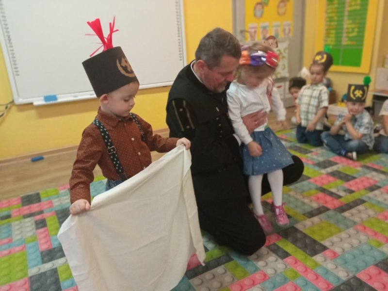 Z okazji dnia św.Barbary do naszego przedszkola zawitał wyjątkowy gość, by razem z dziećmi obchodzić swoje święto. Górnik spotkał się z każdą grupą. Podczas tych spotkań opowiadał o pracy pod ziemią, pokazywał (i pozwolił przymierzyć!) codzienny strój roboczy górnika. Odpowiadał na pytania, a nawet zagrał i zaśpiewał z dziećmi piosenkę. To było bardzo miłe i wesołe spotkanie.