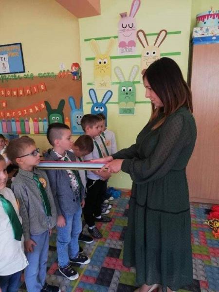 Zajączki to najstarsza grupa w przedszkolu, dlatego pod koniec września odbyło się Pasowanie na Starszaka. Zajączki przedstawiły przygotowaną część artystyczną. Było bardzo uroczyście, gdyż zaproszonymi gośćmi były Pani Dyrektor Sonia, pani Vice – dyrektor Halinka oraz Pani Monika. Starszaki złożyły uroczyste ślubowanie, a potem odbyło się pasowanie wielka kredką przez Panią Monikę. Dzieci dostały pamiątkowe dyplomy oraz słodkie upominki.