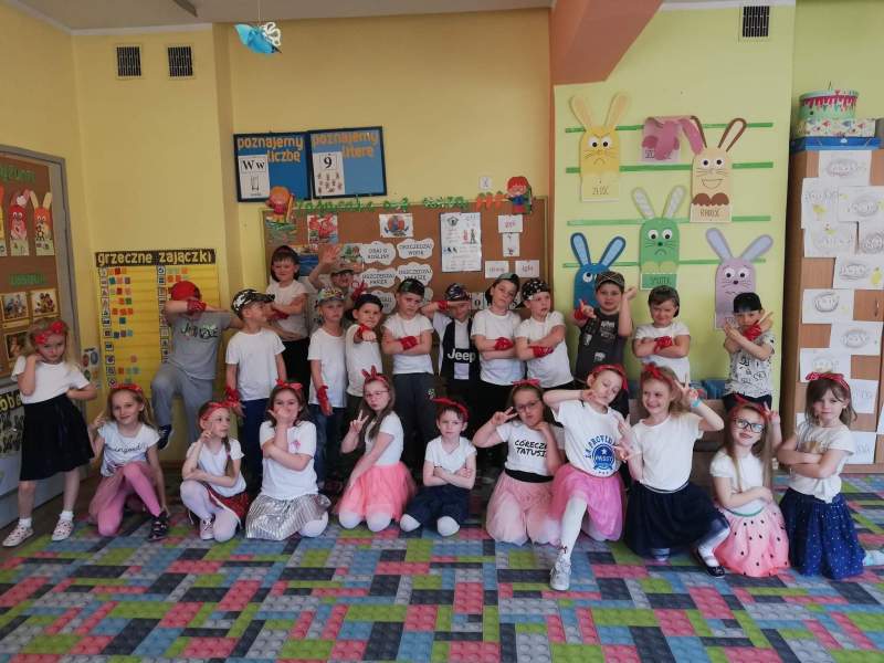 Z okazji Międzynarodowego Dnia Tańca  grupy: Pingwinków, Zajączków i Jeżyków gościły p. Paulinę ze Studia Ruchu „Endorfina”, która pokazała, że taniec może być fantastycznym sposobem na spędzanie wolnego czasu. Dzieci dały się porwać niezwykłym rytmom i chętnie uczestniczyły w tak energetycznych zajęciach.