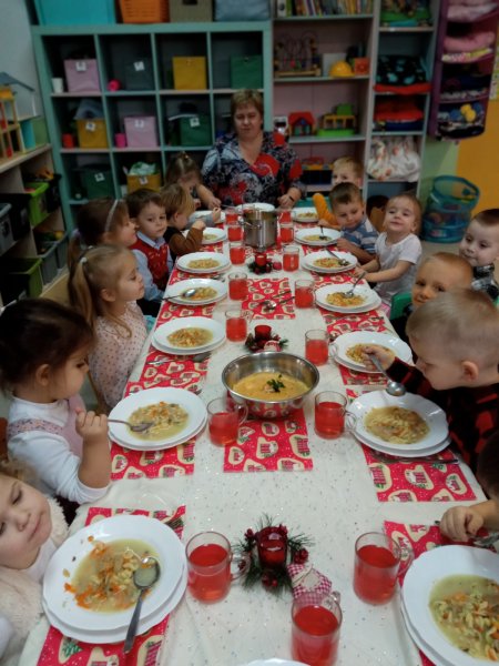 Jak co roku przed świętami wszystkie dzieci spotkały się wraz z paniami przy wigilijnym stole. Były tradycyjne potrawy, dzielenie się opłatkiem i wręczanie prezentów. Nie mogło oczywiście zabraknąć pięknie odśpiewanych kolęd.