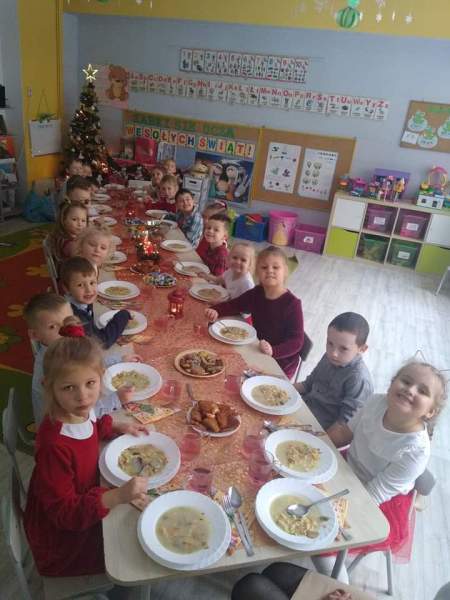 Jak co roku przed świętami wszystkie dzieci spotkały się wraz z paniami przy wigilijnym stole. Były tradycyjne potrawy, dzielenie się opłatkiem i wręczanie prezentów. Nie mogło oczywiście zabraknąć pięknie odśpiewanych kolęd.