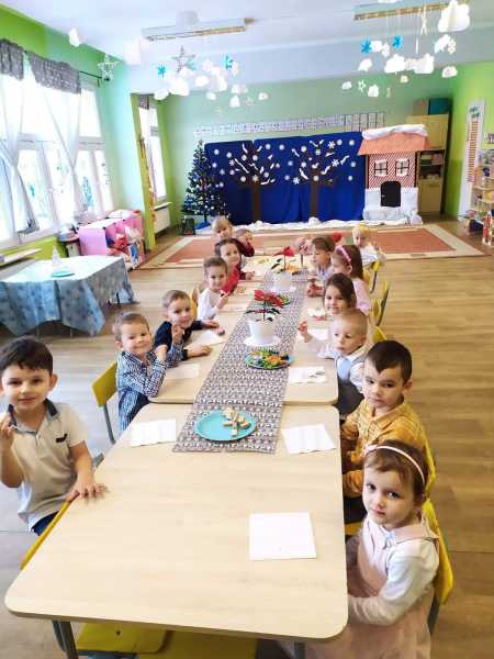 Jak co roku przed świętami wszystkie dzieci spotkały się wraz z paniami przy wigilijnym stole. Były tradycyjne potrawy, dzielenie się opłatkiem i wręczanie prezentów. Nie mogło oczywiście zabraknąć pięknie odśpiewanych kolęd.