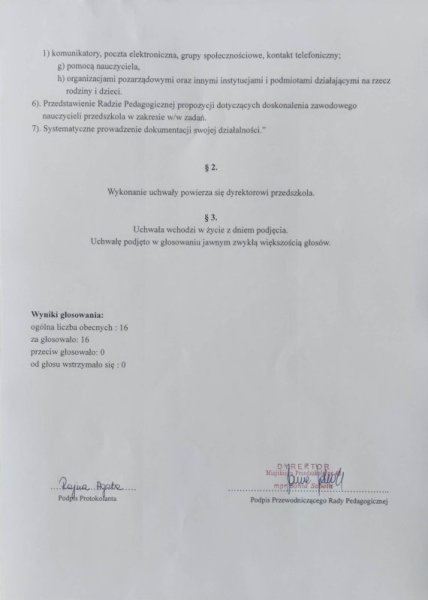 O wspomnianej uchwale Dyrektor powiadamia rodziców bądź opiekunów dziecka.