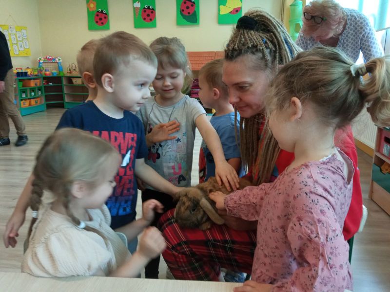 We wtorek w naszym przedszkolu pojawili się sympatyczni goście. Dwa alpaki i królik wraz z opiekunką uczyły naszych przedszkolaków, jak należy traktować zwierzęta. Dzieci miały okazję dowiedzieć się m.in. skąd pochodzą alpaki, co jedzą i co można zrobić z ich wełny. Każdy chętny mógł nakarmić alpakę, pogłaskać ją i zabrać na krótki spacer.