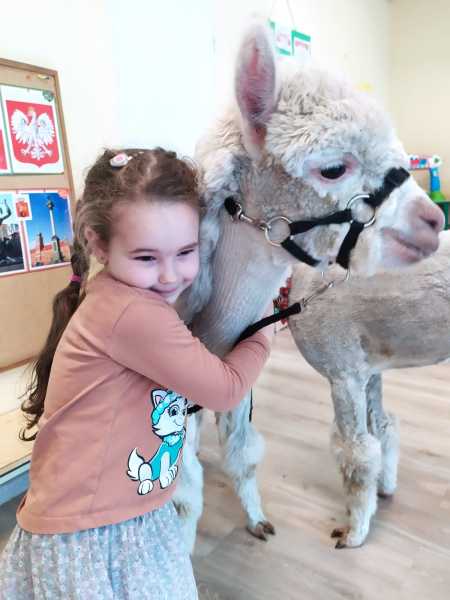 We wtorek w naszym przedszkolu pojawili się sympatyczni goście. Dwa alpaki i królik wraz z opiekunką uczyły naszych przedszkolaków, jak należy traktować zwierzęta. Dzieci miały okazję dowiedzieć się m.in. skąd pochodzą alpaki, co jedzą i co można zrobić z ich wełny. Każdy chętny mógł nakarmić alpakę, pogłaskać ją i zabrać na krótki spacer.