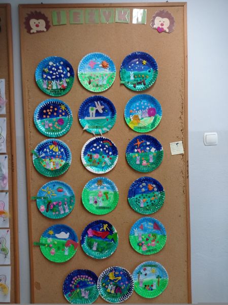 Na przedszkolnym korytarzu, jak co roku pojawiła się piękna dekoracja, przy której można zrobić sobie zdjęcie, a na gazetkach zawisły  wielkanocne prace dzieci.