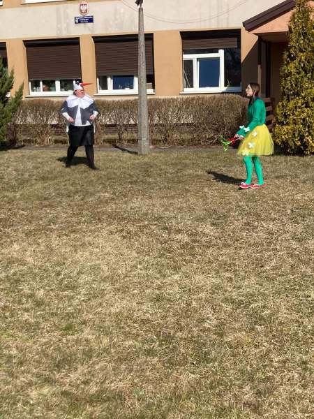 21 marca wraz z bocianem  pożegnaliśmy zimę i powitaliśmy wiosnę. Wesołe spotkanie  z niezwykłymi gośćmi odbyło się na podwórku w promieniach ciepłego, wiosennego słońca. Po powrocie do sal chętne dzieci kolorowały obrazki otrzymane od Pani Wiosny.