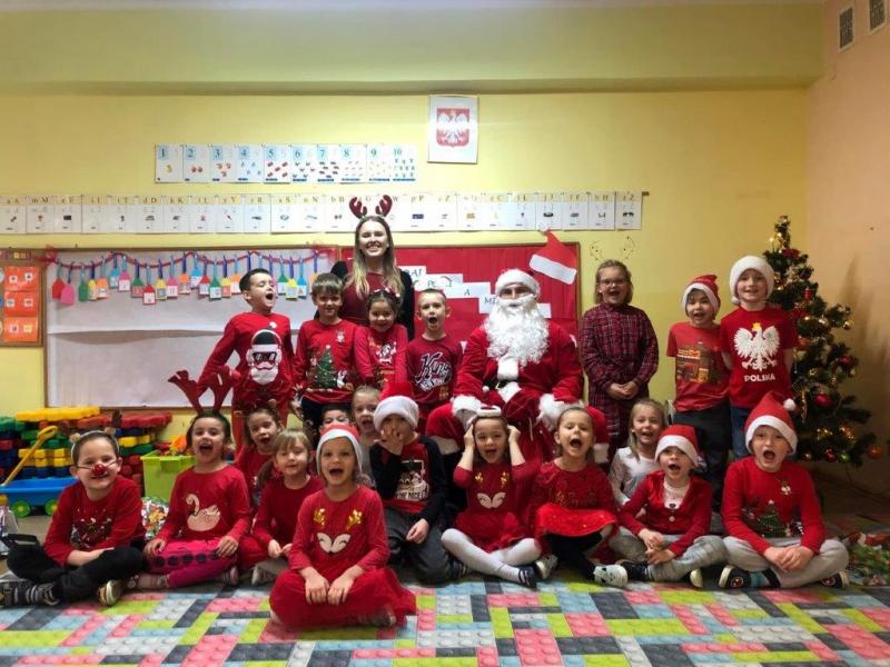 Wszyscy z wielką niecierpliwością oczekiwaliśmy na naszego gościa. Wreszcie jest! Wysłuchał piosenek, wierszyków i oczywiście obdarował wszystkich upominkami.