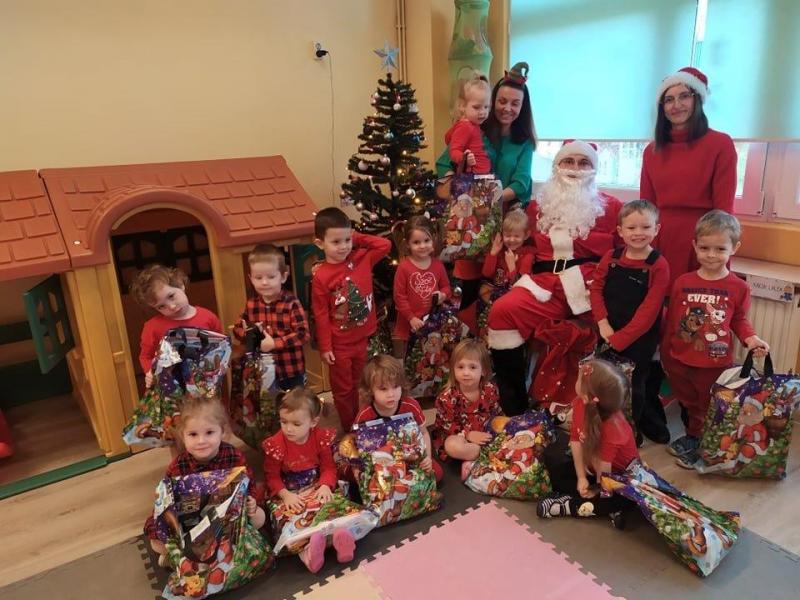 Wszyscy z wielką niecierpliwością oczekiwaliśmy na naszego gościa. Wreszcie jest! Wysłuchał piosenek, wierszyków i oczywiście obdarował wszystkich upominkami.