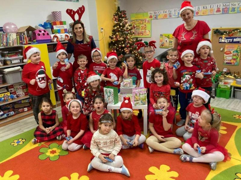 Wszyscy z wielką niecierpliwością oczekiwaliśmy na naszego gościa. Wreszcie jest! Wysłuchał piosenek, wierszyków i oczywiście obdarował wszystkich upominkami.
