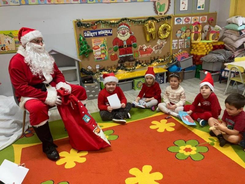 Wszyscy z wielką niecierpliwością oczekiwaliśmy na naszego gościa. Wreszcie jest! Wysłuchał piosenek, wierszyków i oczywiście obdarował wszystkich upominkami.