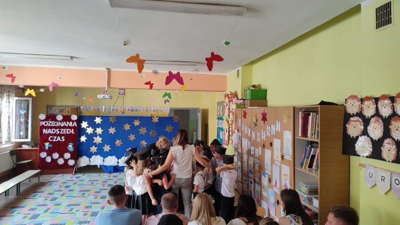 W czerwcu również dzieci z grupy Jeżyków żegnają się z przedszkolem, żeby rozpocząć wielką przygodę w pierwszej klasie. Przedszkolaki przygotowały na zakończenie piękne przedstawienie, w humorystyczny sposób opisały swoje perypetie w maluchach i wspaniale odtańczyły poloneza. Po południu odbył się rodzinny grill, podczas którego była okazja do wspomnień i wspólnej zabawy.